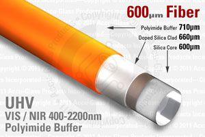 600 Micron VIS / NIR In-Vacuum multimode fiber optic cable, non-terminated, non-polished, Polyimide buffer.
