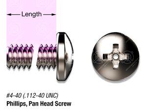 Vented #4-40, 18-8 Stainless Steel, Phillips Pan Head Screw, 7/16" long.